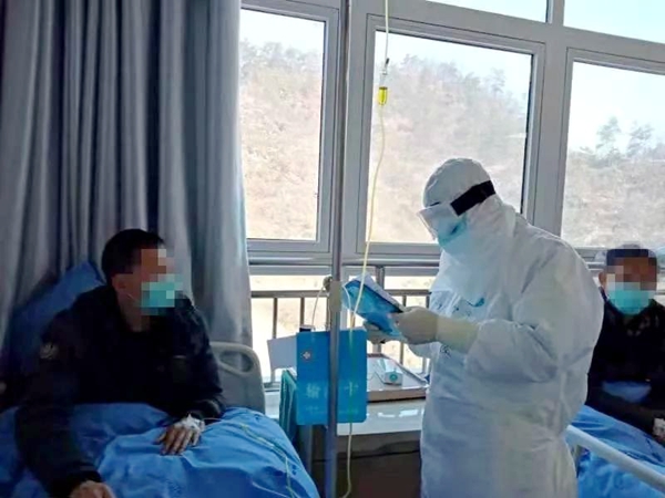 尽管穿戴着防护服,病人还是一眼认出兰俊。询问病情、解答疑问,兰俊语气铿锵有力。然而,病友们并不知道,眼前的兰医生已经连续工作22天。更不知道,他腰椎骨折痊愈还不到1个月、两周前亲人去世。