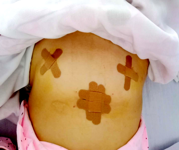 经询问,这位患者已经上环三十余年,近年来常感腹痛,查了个子宫附件彩超,竟然发现环不见了!可是她自己却说并没有看见环掉出来过。腹部CT揭开了真相,原来环已经跑到腹腔去了,这可吓坏了患者和家属,好好的环怎么跑到肚子去了呢?经过妇产科医生的耐心解释,患者放下疑虑要求把这个害她腹痛的“小东西”在腹腔镜下取出来。在妇产科团队的配合下,短短半个小时,就在腹腔镜下取出一个金属宫型节育器。患者肚子上只有3个0.5cm的小伤口,当天晚上患者就能下床活动了。