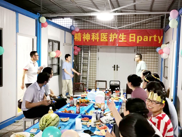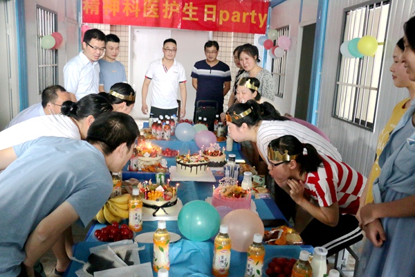 自新冠肺炎疫情发生以来,医院精神科一直处于全封闭管理状态,医护人员工作之余就在简陋的屋顶加层隔离区内学习生活已半年余,为让医护人员在紧张的工作之余释放压力,缓解工作的不良情绪,院工会特意为近期即将生日的5位医护人员组织举办了此次集体生日。“集体生日会”这一亲情举措,不仅让医务人员们感受到医院这个大家庭的温暖,更充分体现了医院“以人为本,关爱员工”的理念,增强了医务人员的凝聚力,有利于让同志们团结一致,取得疫情防控的进一步胜利和医院中西医结合事业的发展。