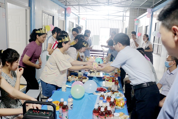 近期过生日的5位寿星,伴随着烛光点点,闭上了眼睛虔诚许愿,大家一起品尝美味的蛋糕,共同分享生日的喜悦,幸福欢乐的气氛萦绕其中,每个人脸上充满喜悦。大家在轻松愉悦的氛围中尽情的畅谈,游戏,放松身心,调整好心态以便于继续投入到疫情防控常态化工作中去。