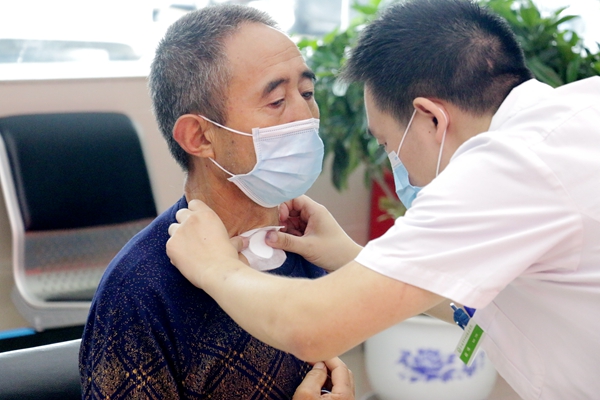 活动现场,一大早前来贴三伏贴的市民就排起了长队,我院治未病中心、针灸科、儿科、呼吸内科、皮肤科、康复科等科室专家在门诊大厅一字排开,为群众免费贴头伏三伏贴。家住北山小区的张阿姨一边做三伏贴一边连声夸赞,“我患有老慢支多年了,每到冬天就咳嗽不止,在你们这连续贴敷两年了,现在症状已经大大缓解了。”