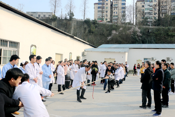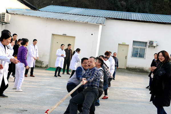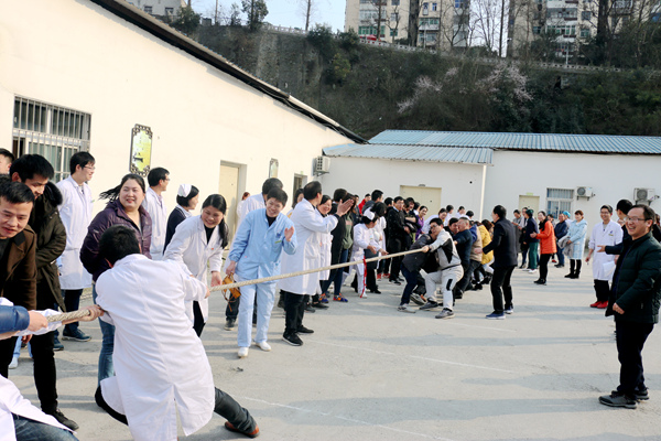 为庆祝"三八"妇女节,3月7日下午,我院工会牵头组织开展拔河比赛活动,全院共有7支队伍参加比赛。院领导莅临现场观看比赛。临床、医技及行政职能科室成员均积极参加比赛。