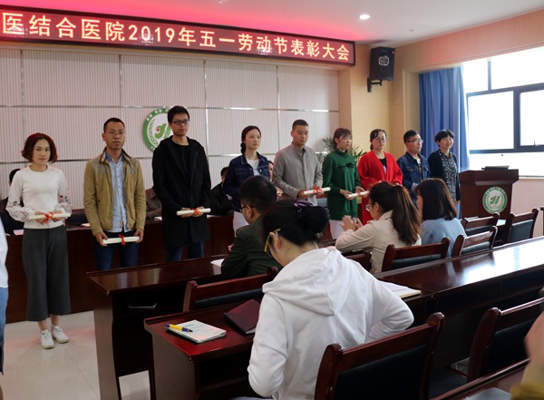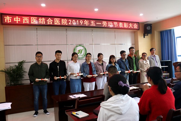 会上,工会主席谭伦宣读表彰决定,院长朱少铭、党总支书记吴云毅、副院长丁爱萍等院领导班子依次为荣获五一劳动奖、青年突击手、优秀团员、优秀青年志愿者获奖人员进行颁奖。外I科主任曹扶胜、消化内科副主任赵平代表分别做了获奖感言,他们表示将再接再厉为中西医结合事业贡献自己的力量。