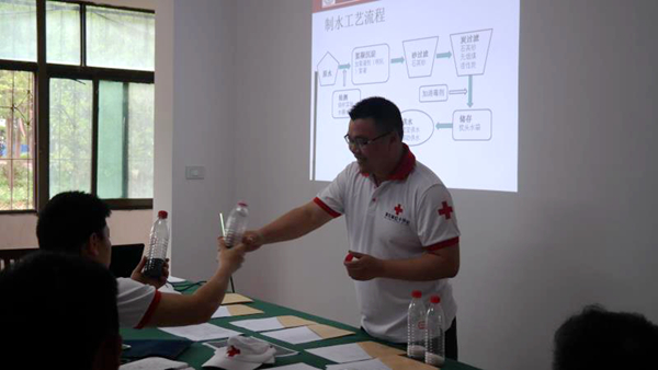 本次培训演练分演练和培训两部分,演练主要进行评估选址、设备展开、水质监测、制水操作、后勤保障等;培训主要进行志愿者管理、水响应的最低标准、救援队建设讨论等。队员普遍反映培训课程设置合理,演练目的明确。演练中,在孙文赋等同志认真教学下,队员们不惧困难,克服酷暑,刻苦训练,较好地诠释了“特别能奉献、特别能吃苦、特别能战斗”的救援队精神,实现了预期目标,我院孙文赋同志的工作受到省红十字会感谢表彰。