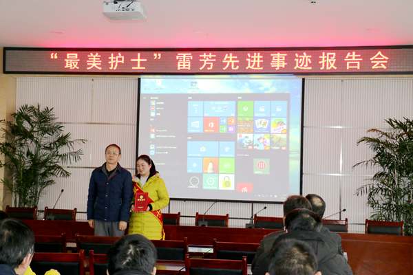会上,大家一起观看了由湖北电视台播出的雷芳公交救人新闻报道,随后雷芳本人做先进事迹报告。副院长丁爱萍宣读了医院表彰决定,授予雷芳“最美护士”荣誉称号,院长朱少铭为雷芳颁发了荣誉证书。雷芳的两位同事对她的事迹做了点评。