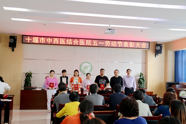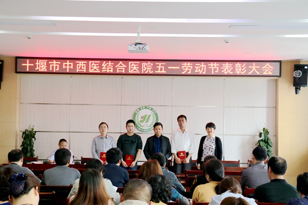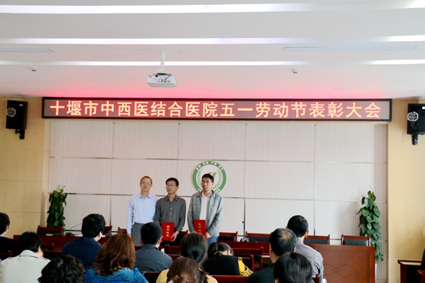 会上,院务常委谭伦宣读了医院表彰决定文件, 其中,王又桂、孙文赋、别江丽、李洁、周晓亮、程伟、雷芳等七位同志“五一劳动奖章”荣誉称号,兰俊、刘秀建、刘鹏、陈光等四位同志“劳动模范”荣誉称号。会上还为获得“十堰市中青年优秀拔尖人才”称号的陈太军、成加林颁发了荣誉证书。别江丽作为“五一劳动奖章”获得者代表进行发言,表示将戒骄戒躁,继续努力工作。院长朱少铭号召大家以先进集体和优秀个人为榜样,爱岗敬业、扎实工作,传递正能量,甘于奉献,为医院的改革发展作出新的更大的贡献。