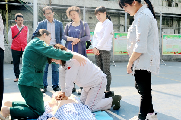 活动在志愿者们重温红十字誓词的宣言中拉开序幕。随后,来自我院内科、外科、妇科、康复科、精神科及急诊科的多位专家在现场为辖区居民免费进行了血压、血糖测量和健康咨询。我院急诊科的护士还为辖区居民和志愿者进行了应急救护培训。通过现场示范操作,提高市民在遭遇突发情况后的应急处置能力。活动现场还免费发放了健康宣传资料和近两万元的常用药品。
