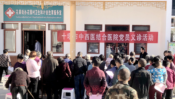 10月10日,我院组织专家团队一行10余人深入张湾区花果街办花园村为村民开展精准扶贫免费健康体检服务百姓活动。