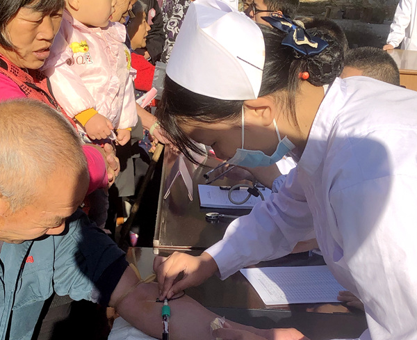 来自各科室临床一线的专家们现场为群众进行体格检查、测血压、B超、肝功、肾功、血糖、血脂等化验,并宣传我院精准扶贫优惠政策,当天共发放了宣传手册200余份,体检80余人次,并提供健康知识咨询100余人次。