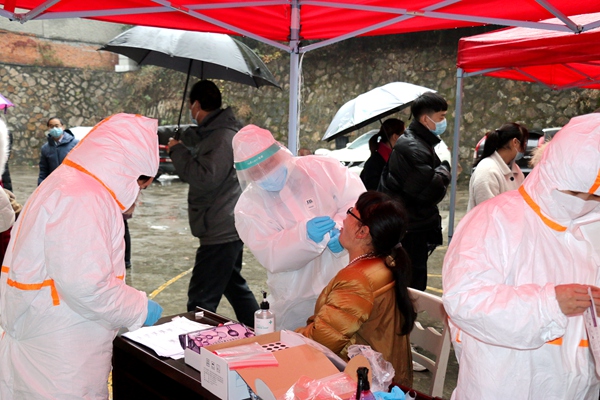 不畏雨雪走进花果社区 落实基层医务人员核酸检测
