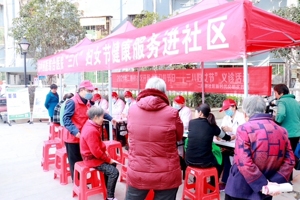 3月4日,我院医护专家团队来到二堰桥社区开展“三八”妇女节健康服务进社区活动,社区居民踊跃参与。
