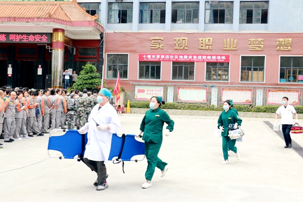 为迎接第13个全国“防灾减灾日”的到来,进一步增强人民群众防灾减灾意识,推广防灾减灾知识和避灾自救互救技能,根据上级有关精神,5月12日上午,在张湾区应急管理委员会统一领导和组织指挥下,由市人大、市人防办、张湾区消防救援站、十堰高级技工学校等主办的“十堰市夏家店社区地震应急疏散救援演练”顺利举行,我院为本次活动指定医疗救护专业队。