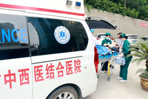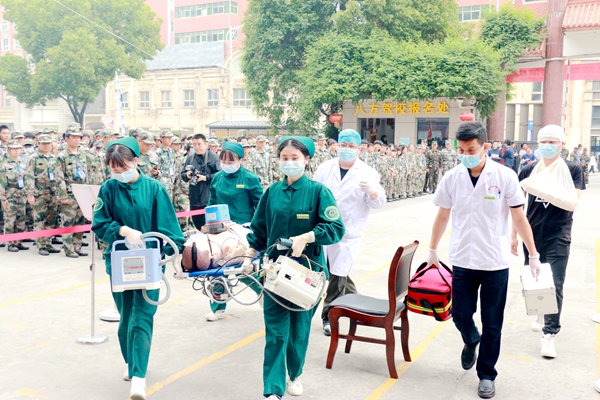 在救援被困学生环节,我院骨关节科杨阳对骨折的学生进行包扎固定,急诊科团队对意识丧失群众行心肺复苏术,患者恢复生命体征后转运送至医院。整个操作娴熟流畅,得到现场观众和市民的称赞。