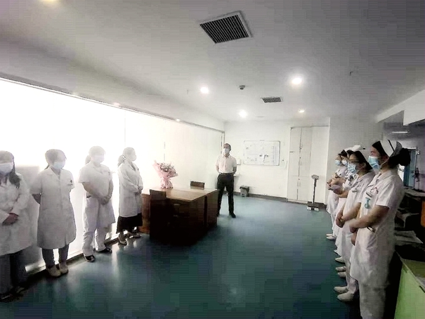 院长朱少铭、书记吴云毅、副院长丁爱萍、王诗才、张彦波、工会主席谭伦等院领导分别深入各临床科室,亲切慰问坚守在临床一线、辛勤工作的“白衣天使”,为她们送去节日的问候和祝福。祝福白衣天使们节日快乐。感谢全院护理人员为医院发展和护理工作所做出的贡献,特别是新冠肺炎疫情防控期间,恪尽职守、辛勤工作、无私奉献,为疫情防控和复工复产做出了积极的贡献。同时,鼓励护理工作者们要进一步传承和弘扬南丁格尔甘于奉献、救死扶伤的人道主义精神,发扬护理事业的光荣传统,加强护理知识和技能的学习,培养良好的耐心及责任心,把关爱送给每一位患者,以“爱心、耐心、细心、责任心”对待每一位病人,做好护理工作。