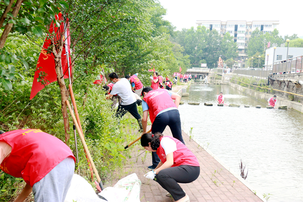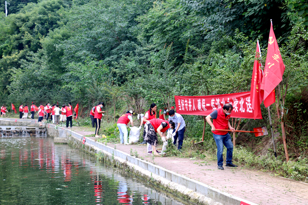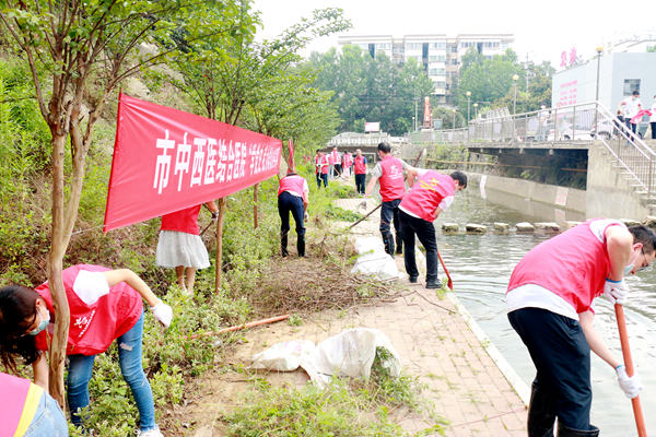 7月1日下午,我院组织开展“学党史、办实事、当好守井人,确保一库清水永续北送”守护美丽东沟河活动。医院12个党支部100余名党员干部参加。