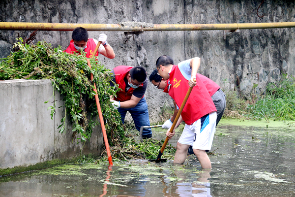 在医院旁的东沟河里,由于近段时间阴雨连绵,山上的泥土经雨水冲刷,带入河道后沉积在河底形成淤泥。各支部党员同志干劲十足,挥舞着铁锹,锄头等工具,清除河道边的杂草,清理河道内的淤泥。经过党员干部近三个小时的奋战,终于让东沟河又恢复了往日的水清鱼欢,人行道也变得整洁靓丽。
