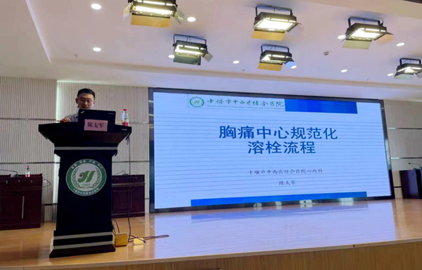 在随后的培训班上,由华中科技大学同济医学院主任周强教授、湖北省中医院心血管内科吴斌教授、湖北省中西医结合医院心血管内科胡晓军教授及十堰市专家以规范化建设胸痛中心、上医医未病从2020共识看心梗后心衰的防与治、冠脉微血管疾病的中西医结合治疗、急性ST段抬高型心肌梗死诊断和再灌注治疗、胸痛中心规范化溶栓流程、高血压病的中西医结合治疗为题进行专题授课。