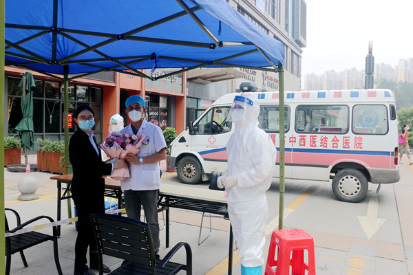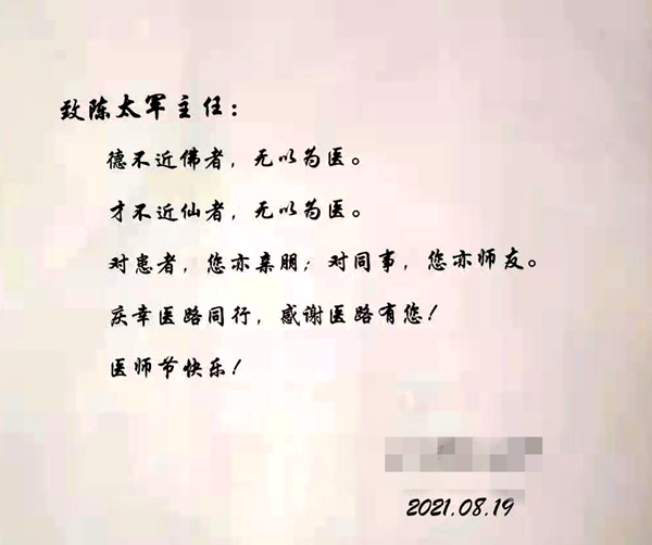 8月19日是第四个“中国医师节”,当天,市中西医结合医院外出采集核酸队、发热门诊以及住院部病区医务人员陆续收到鲜花、蛋糕等多种患者或家属送来的医师节祝福。