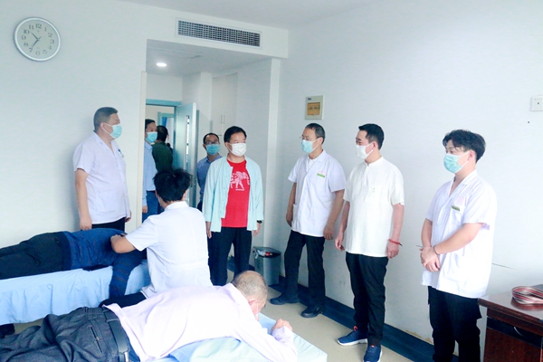 杜佰鸿一行先后实地参观了中药配制中心、儿科推拿中心、治未病中心、中医经典病区、康复针灸中心等地。