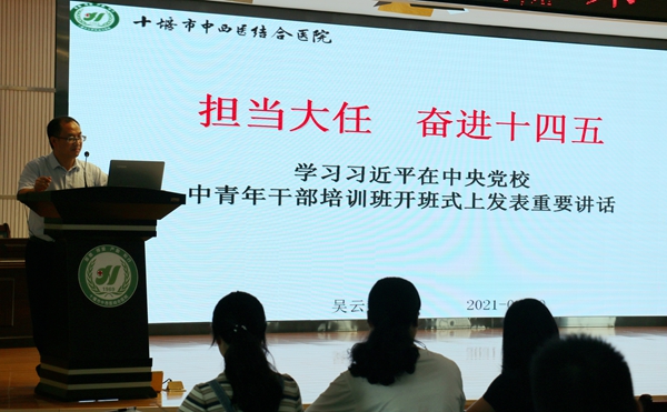 开班仪式结束后,吴云毅作了题为《担当大任 奋进十四五》的开讲第一课,分析了新时代的历史定位和深刻内涵,讲述了在新时代党员应具备的品质、如何担当大任,要求大家全面落实习总书记在中青年干部培训班上的讲话精神、争做合格共产党员,积极投身中西医结合高地、中医药服务能力高地、中医药健康产业高地建设,为医院发展贡献力量。
