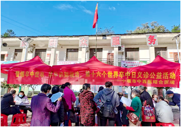 为有效预防和控制脑卒中(脑中风)疾病发生,提高广大群众卒中识别能力,减少因脑卒中导致的残疾、死亡发生,在第16个“世界卒中日”来临之际,市中西医结合医院于2021年10月21日在张湾区汉江街办刘家村举行脑卒中免费筛查义诊活动。