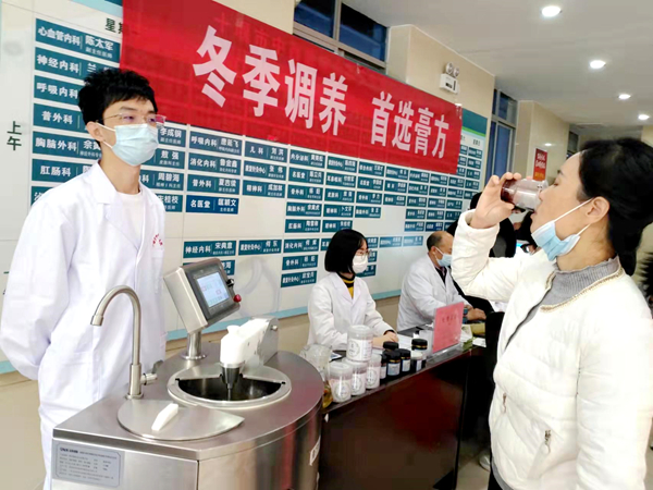 在门诊大厅的活动现场,不少市民在免费品尝膏方后赞不绝口。