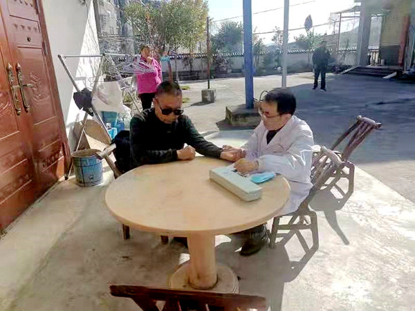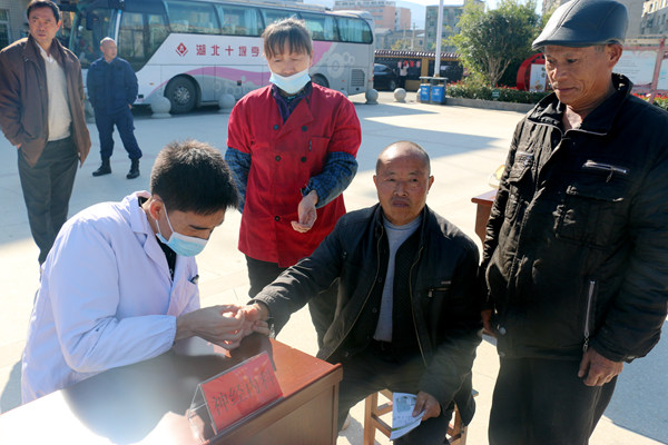 在义诊现场,来自我院名医堂、心血管内科、神经内科、消化内科、骨科、急诊科、妇产科、精神科等科室的专家一下车,就为早早等候在广场的群众进行免费健康体检,测量血压,为身体不适的人进行中医针灸治疗,在了解到有几户居民家中有行动不便的老人有健康需求时,几位专家走进农户家中为患者体检,并详细进行健康指导。