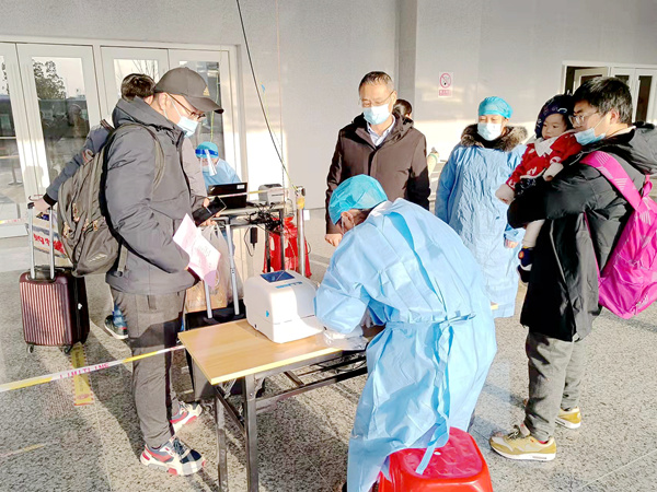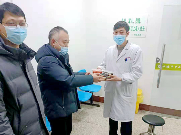 院长朱少铭、副院长丁爱萍首先来到高铁十堰东站,慰问一直驻守在这里的我院一线防控医务人员,并送上节日的祝福。