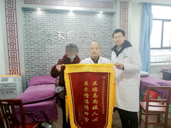 2月11日,一位李姓婆媳俩带着锦旗,来到名医堂陈立兵的诊室内,为陈立兵送上锦旗表达感激之情。