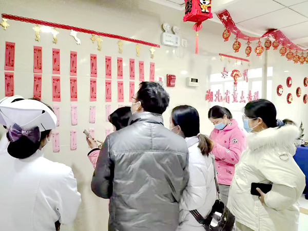 活动现场,患者和家属以及部分医护人员纷纷参与到有趣的猜谜活动中。大家时而低头沉思、时而热烈交谈,在欢声笑语间传递温暖与关爱。
