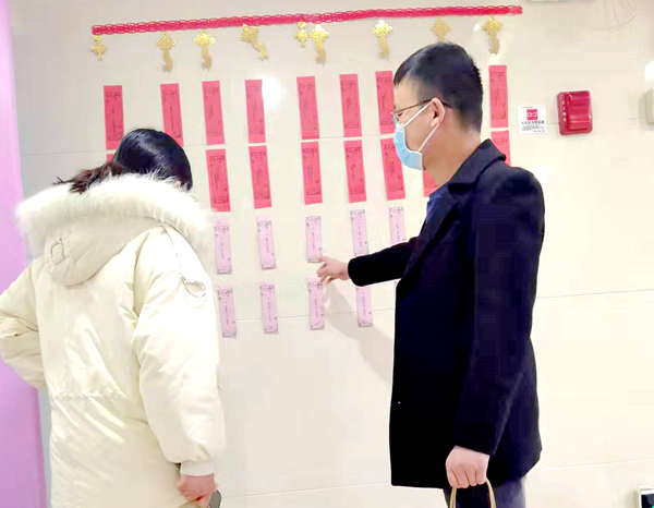 妇产科医护人员将五彩斑斓的灯笼和灯谜卡片悬挂在住院部14楼大厅内。这些灯谜包括中医药类、西医名称类主题。每一个灯谜都与健康息息相关。医务人员希望通过这份“健康关爱”为住院患者和家属送去节日的问候。