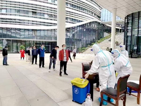 4月11日-12日,市中西医结合医院派出100多名骨干医疗队伍参与区域全员扩面核酸检测,圆满完成标本采集、转运和检测工作。