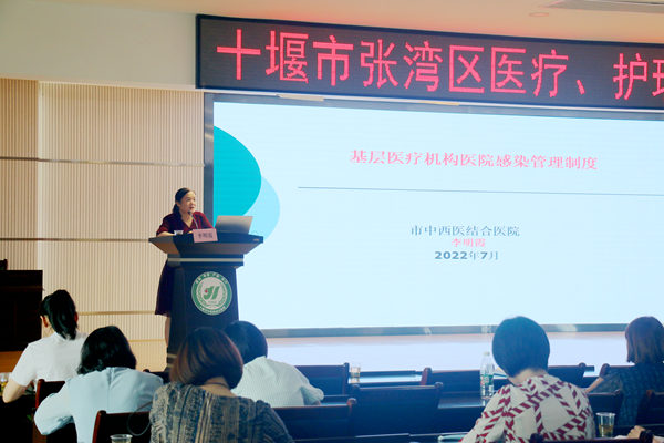 7月8日, “十堰市张湾区医疗、护理、院感质控中心质量控制培训会”在我院顺利举办,张湾区卫生健康局副局长罗远秋、十堰市院感管理委员会常务委员胡荍出席,来自张湾区医疗、护理、院感质控中心和基层医疗机构医务人员共170余人参会。