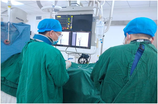 3、5月25日, 63岁老人左侧肢体麻木无力,入院后确诊为急性脑梗死,且右侧颈内动脉重度狭窄近80%。在稳定病情后,市中西医结合医院介入科为老人开展颈动脉支架植入术,让老人转危为安,有效降低脑梗死再发可能。