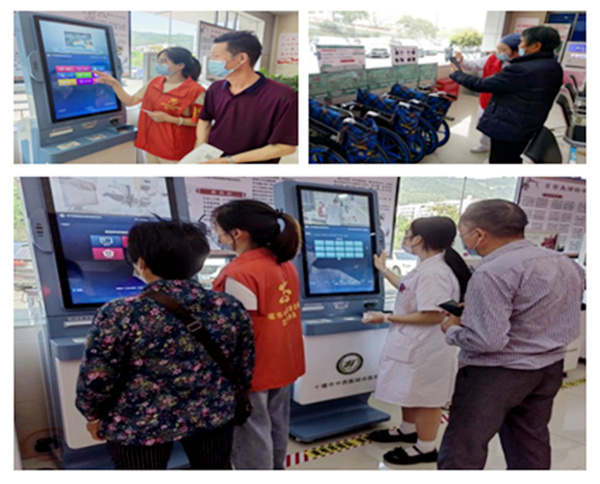 医院设置有智慧助老服务岗,自助设施现场安排有志愿者指导,为老人提供就近挂号、缴费、查询等服务,自助系统具备屏幕大、字体大、语音播报和操作流程提示等功能,能满足老年人的自主操作需求,帮助老年人越过“数字鸿沟”,有效缩短了老年患者就医等候时间,同时也提升了老人就医获得感、幸福感、安全感。
