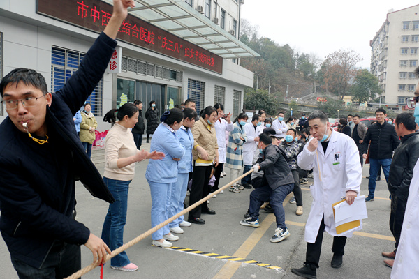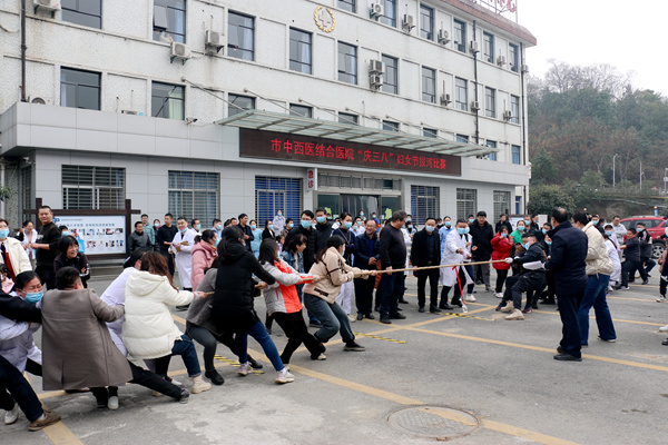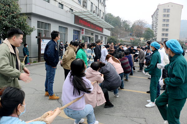 2月25日下午,由院工会、妇委会举办的“庆三八”拔河比赛在门急诊大楼前小广场举行,本次比赛共有18个支部组成的8支队伍展开激烈角逐,共有96名队员、数百名啦啦队参与。