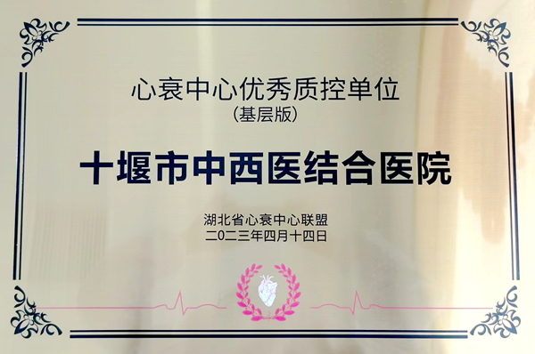 喜讯!十堰市中西医结合医院荣获心衰中心优秀质控单位!