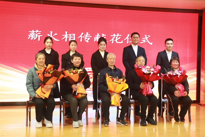 会上,举行了薪火相传献花仪式,由新员工向退休干部代表献花。