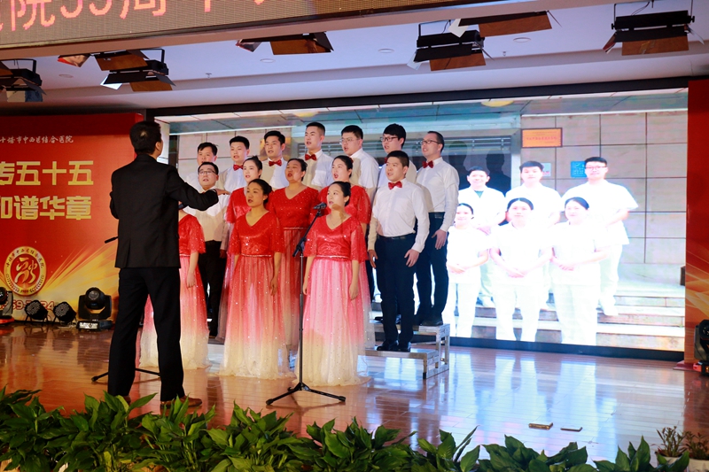盛世典章,55年悬壶济世凌云志;峥嵘岁月,55载桃李芬芳杏林情。12月28日下午15:00,我院建院55周年文艺汇演在17楼学术报告厅盛装启幕,华彩绽放。社会各界友好单位、离退休老专家及从医院医护人员参加了庆祝大会。
