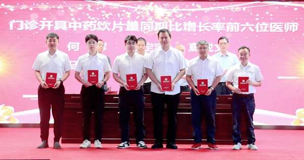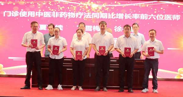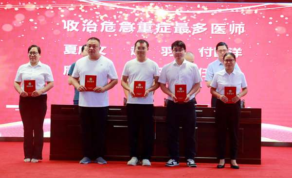 会上,副院长王诗才宣读了《关于对第八届中国医师节活动优胜集体和个人进行表彰的通知》,院领导分别为门诊工作量增长突出、中药饮片使用量增长前六、三四级手术表现优异、中医非药物疗法推广领先、支持保障得力、病例分析与技能操作优秀、收治危急重症最多及优秀质控员等多个奖项的获得者颁奖。这些荣誉既彰显了“技精于勤”的专业追求,也体现了“德馨于行”的服务初心。
