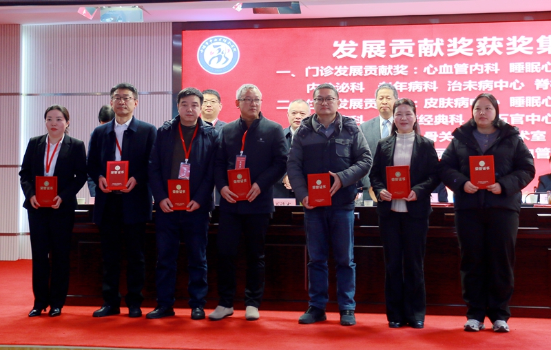 会议还对2025年度新技术、新业务、2025年旗舰科室、护理微创新项目、发挥中医药特色优势先进科室、个人、门诊、住院、手术发展贡献奖、先进集体和服务标兵等进行表彰,院领导分别为获奖科室、个人进行颁奖。