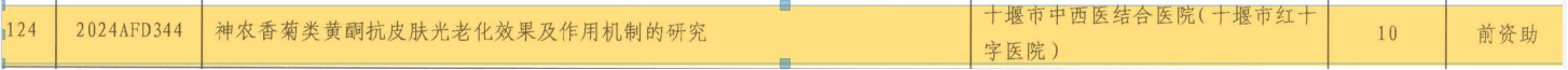 2024年5月我院皮肤科李周团队“神农香菊类黄酮抗皮肤光老化效果及作用机制的研究”获批2024年中医药创新发展联合基金项目立项,获得相关面上项目资助。