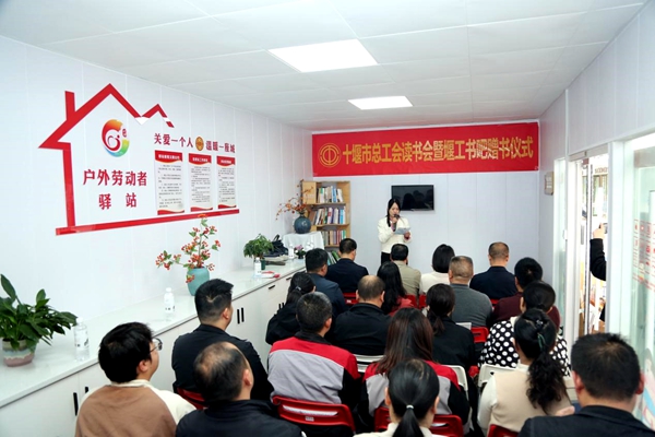 为繁荣职工文化生活,丰富户外劳动者精神文化,营造浓厚书香氛围,10月30日,十堰市总工会在茅箭区五堰街道居然之家户外劳动者驿站举办“堰工书吧”读书分享会暨赠书活动,我院药学部殷莉作为职工代表参加活动并进行读书分享。