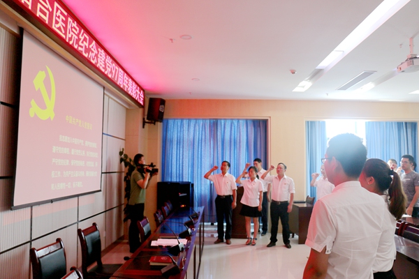 一首庄严的国歌拉开了表彰会的序幕。随后,副院长丁爱萍宣读了表彰文件,院领导分别为2个“十星级”基层党组织和24个积极发挥党员先锋模范作用的“十星级”党务工作者、“十星级”共产党员、优秀共产党员颁发了荣誉证书。会上全体党员重温入党誓词,新党员在领誓人院务常委谭伦同志的带领下进行宣誓。