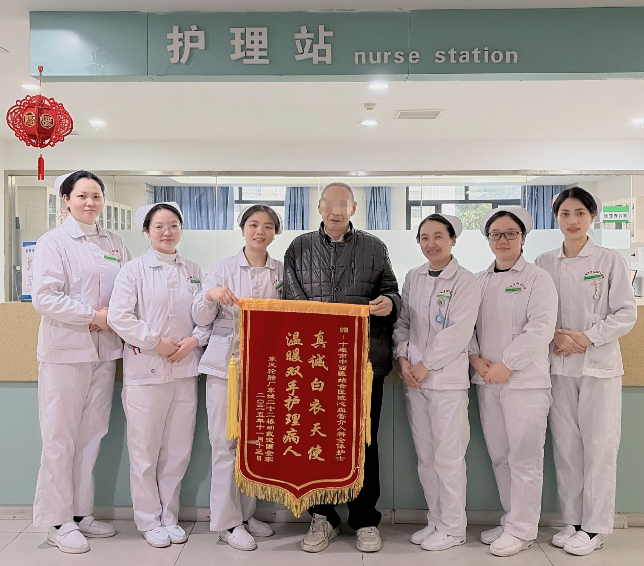 近日,心血管介入科护理团队收到了退伍老军人戴爷爷亲自送来的一面锦旗。锦旗上写着“真诚白衣天使,温暖双手护理病人”,简单而又朴实的题词,不仅承载着一位退伍老军人最真挚的谢意,更娓娓道出了一段发生在介入科病房里,医患之间感人至深的双向奔赴。