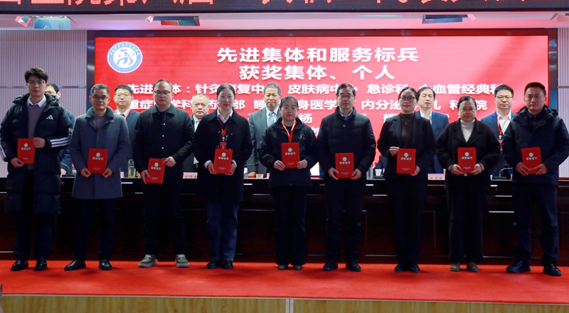 会议还对2025年度新技术、新业务、2025年旗舰科室、护理微创新项目、发挥中医药特色优势先进科室、个人、门诊、住院、手术发展贡献奖、先进集体和服务标兵等进行表彰,院领导分别为获奖科室、个人进行颁奖。